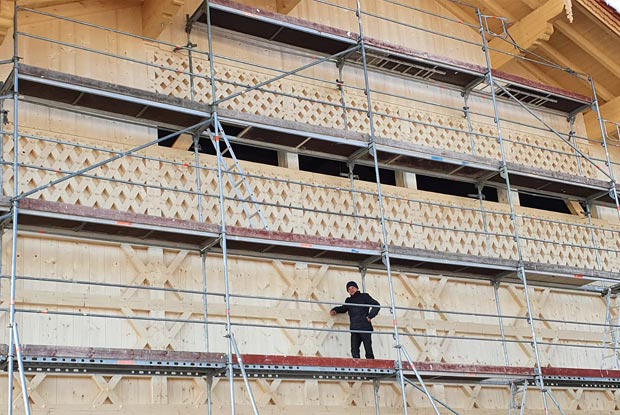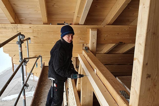 Spektakuläres Bauprojekt: Während seines Pflichtpraktikums hat Maxi Kirr mitgeholfen, einen Stall mit aufwändigem Bundwerk zu gestalten.