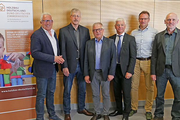 Einstimmig ist Peter Aicher, Zimmererpräsident aus Bayern bei der Fachversammlung von Holzbau Deutschland im Mai 2018 in Berlin erneut zum Vorsitzenden von Holzbau Deutschland gewählt worden. Auch die Stellvertreter Josef Schlosser und Karl Hoffmeister wurden bestätigt.